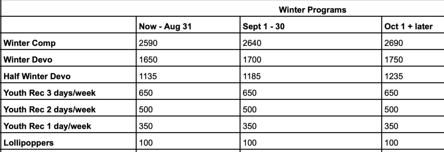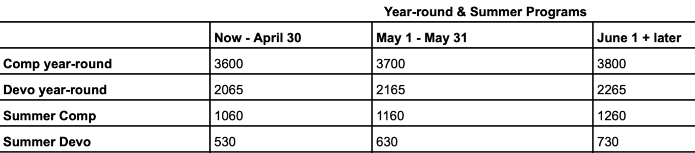 Transportation is included for all Comp Team programming.